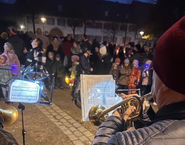 Dieses Jahr starteten wir die St. Martinsfeier mit einer Andacht in der ev. Kirche. Viele sind der Einladung gefolgt. Der Kinderchor begleitete die Andacht. Im